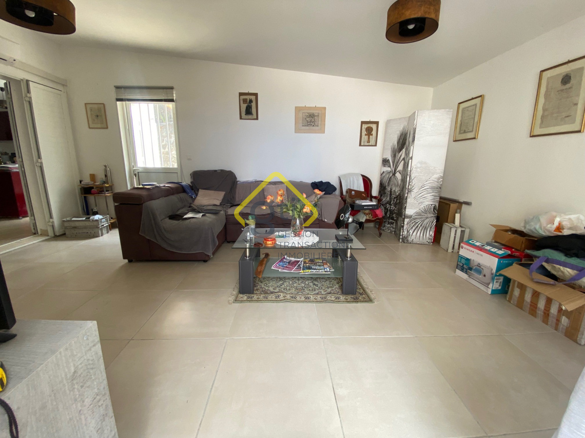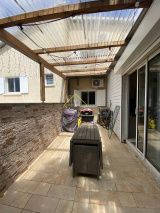 Le séjour donne sur un bel espace extérieur couvert.