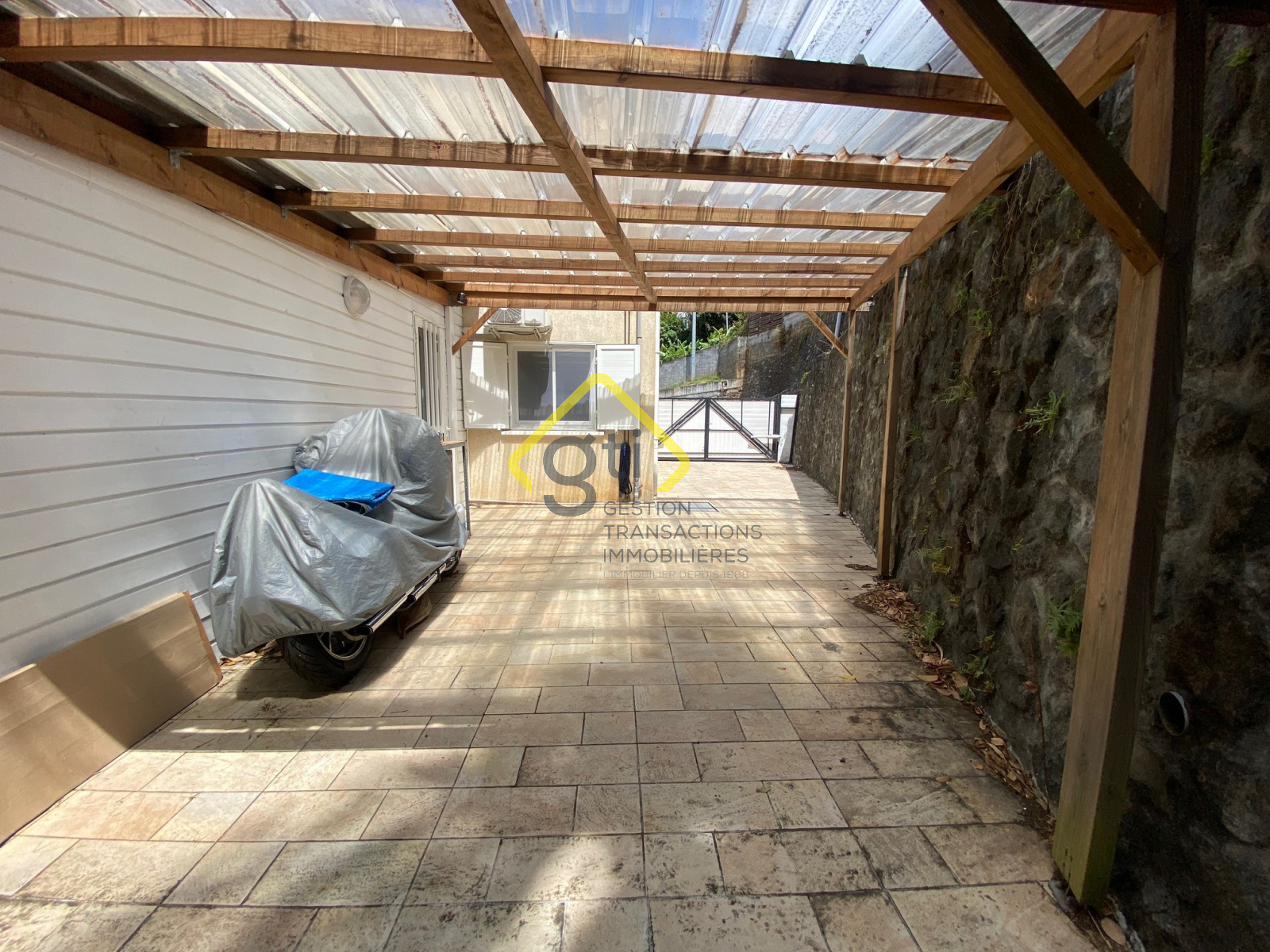 Enfin, vos profiterez d'une vaste cour avec stationnement voiture privatif et couvert (portail motorisé).