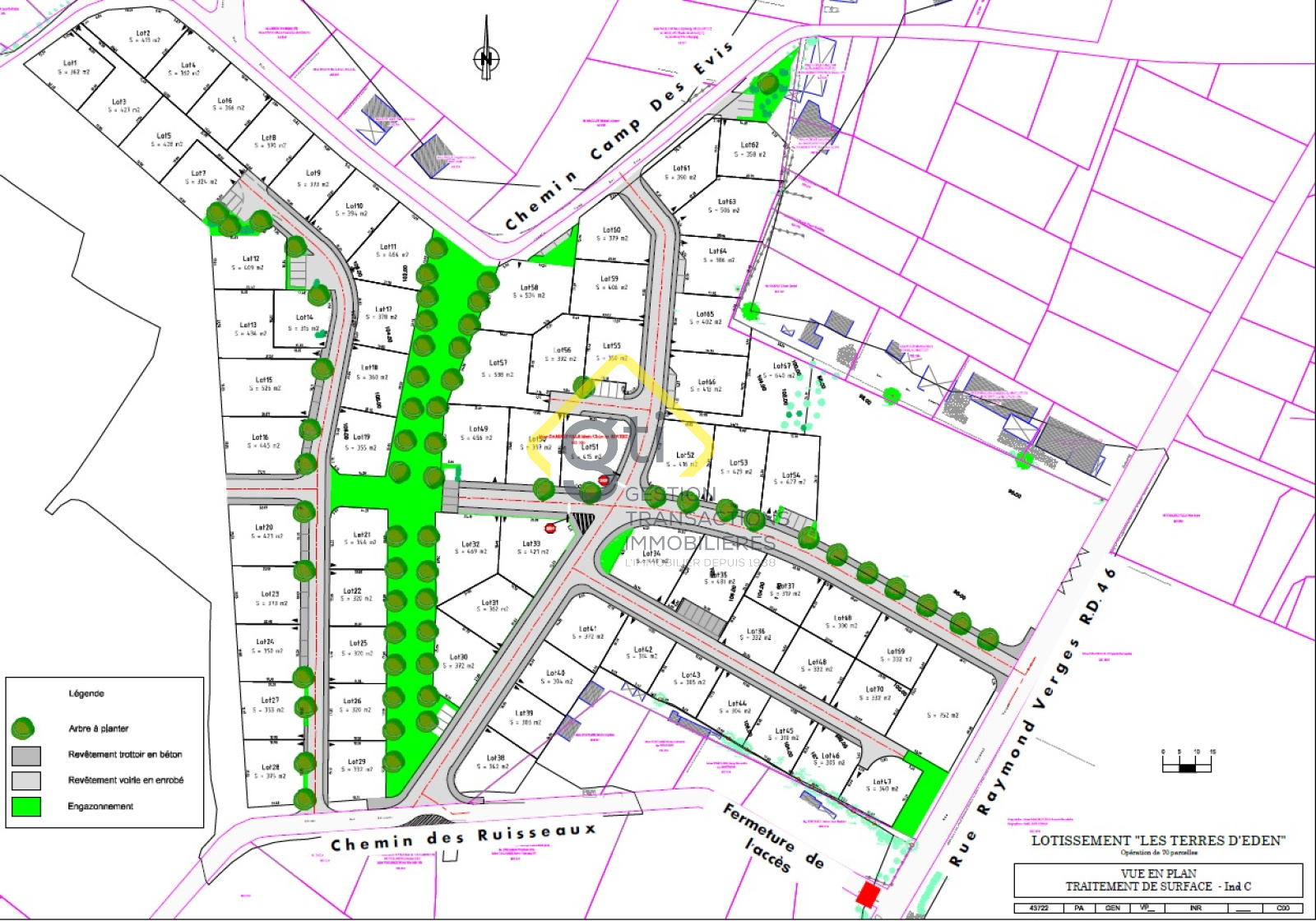 L'agence GTI, spécialiste de la vente de terrains à La Réunion, vous propose un nouveau lotissement de qualité. Situé à Quartier Français, secteur Camp des Evis, LES TERRES D'EDEN est un lotissement idéalement placé sur les premières hauteurs à 2 minutes du centre commercial GRAND EST et des accès 4 voies. Ce lotissement situé en zone Ua propose 70 parcelles de 302 m² à 640 m². Situé dans un secteur zone encore peu urbanisé, on y profite de la verdure environnante et d'une belle vue, notamment sur nos montagnes. Que vous souhaitiez construire votre habitation principale ou investir avec pour finalité la location et/ou la défiscalisation, n'hésitez pas à nous contacter. Nous sommes à votre disposition pour toute information et réservation. A partir de 99 990€